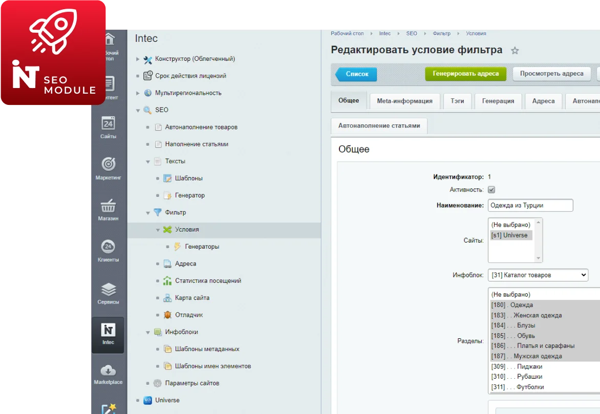 Надежный помощник для эффективной SEO-оптимизации и успешного продвижения в поисковиках Модуль включает автогенератор уникальных текстов и SEO-фильтр, который позволяет настраивать мета-данные и создавать посадочные страницы для фильтрации товаров
