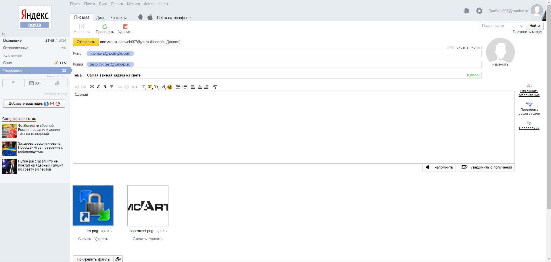 1. Создать служебный почтовый ящик на любом почтовом сервере (gmail, yandex, mail и т.д.). Вы можете использовать уже существующий ящик стороннего почтового сервера, главное условие — он не должен принадлежать никому из пользователей портала.