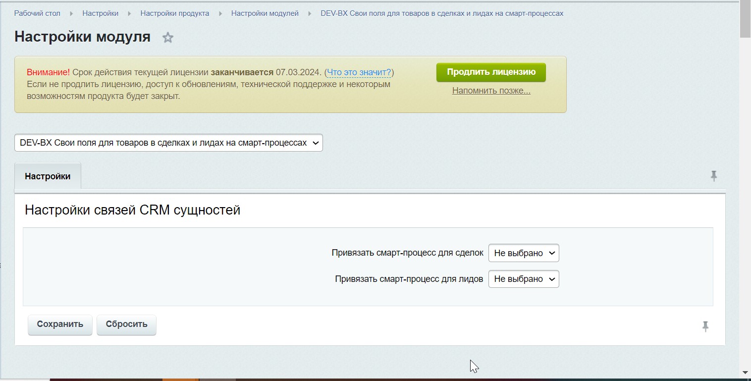 DEV-BX Свои поля для товаров в сделках и лидах на смарт-процессах