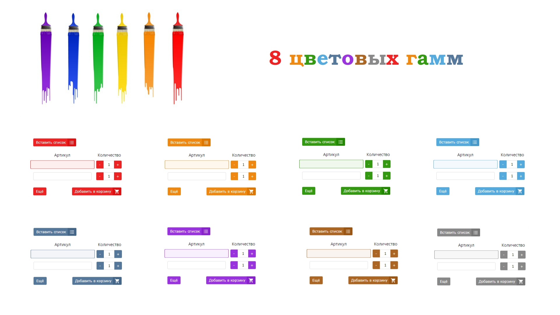 Выбор одной и 8 цветовых гамм.