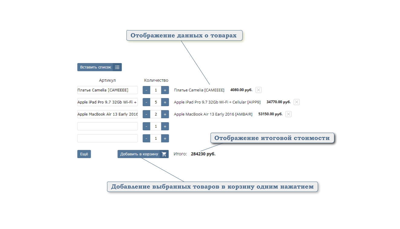 Добавление в корзину по артикулу