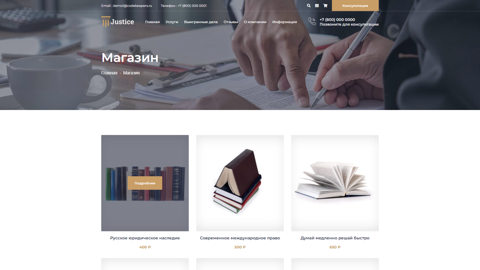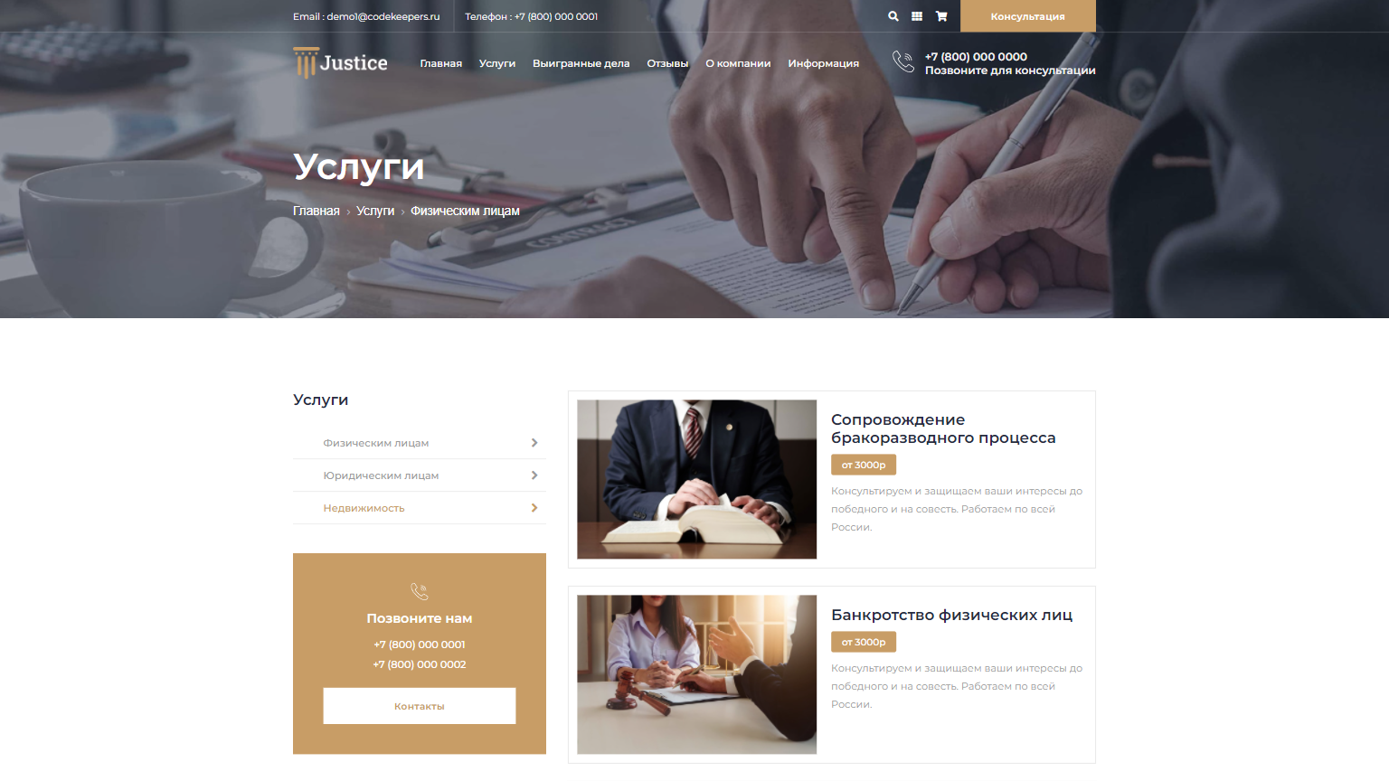 Justice. Сайт юридических услуг. Решение для юридических компаний, юристов и адвокатов.
