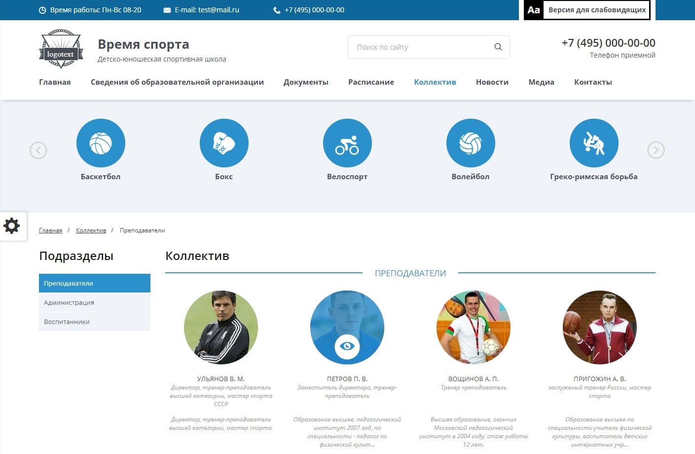 Подробную информацию об установке и настройке типового решения можно найти на сайте: http://sportivno.ru/install/