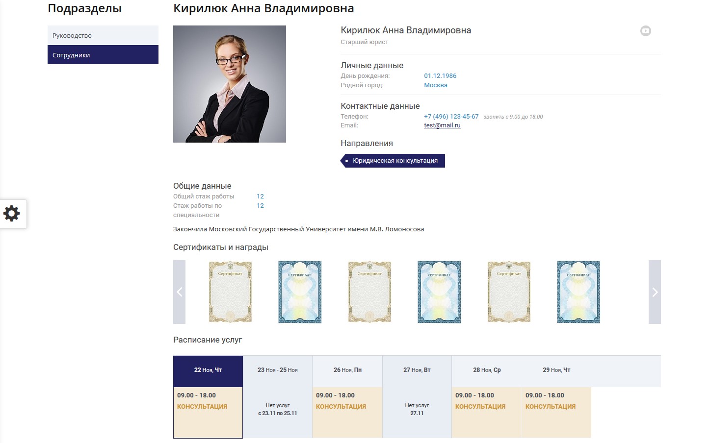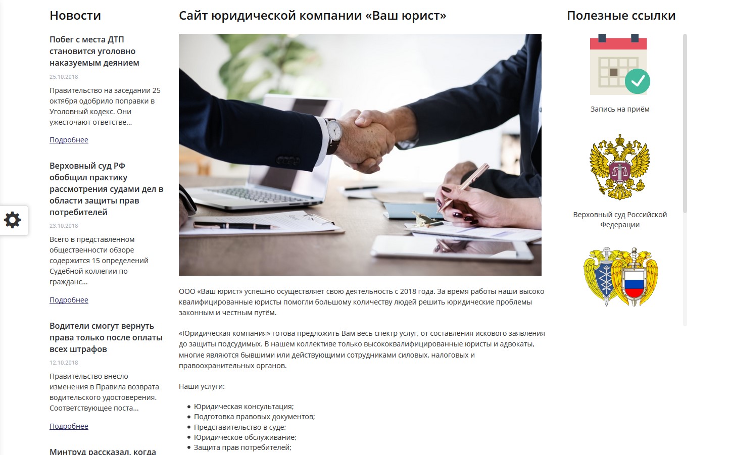 Мибок: Сайт юридической компании, адвокатской конторы (частного юриста, адвоката)