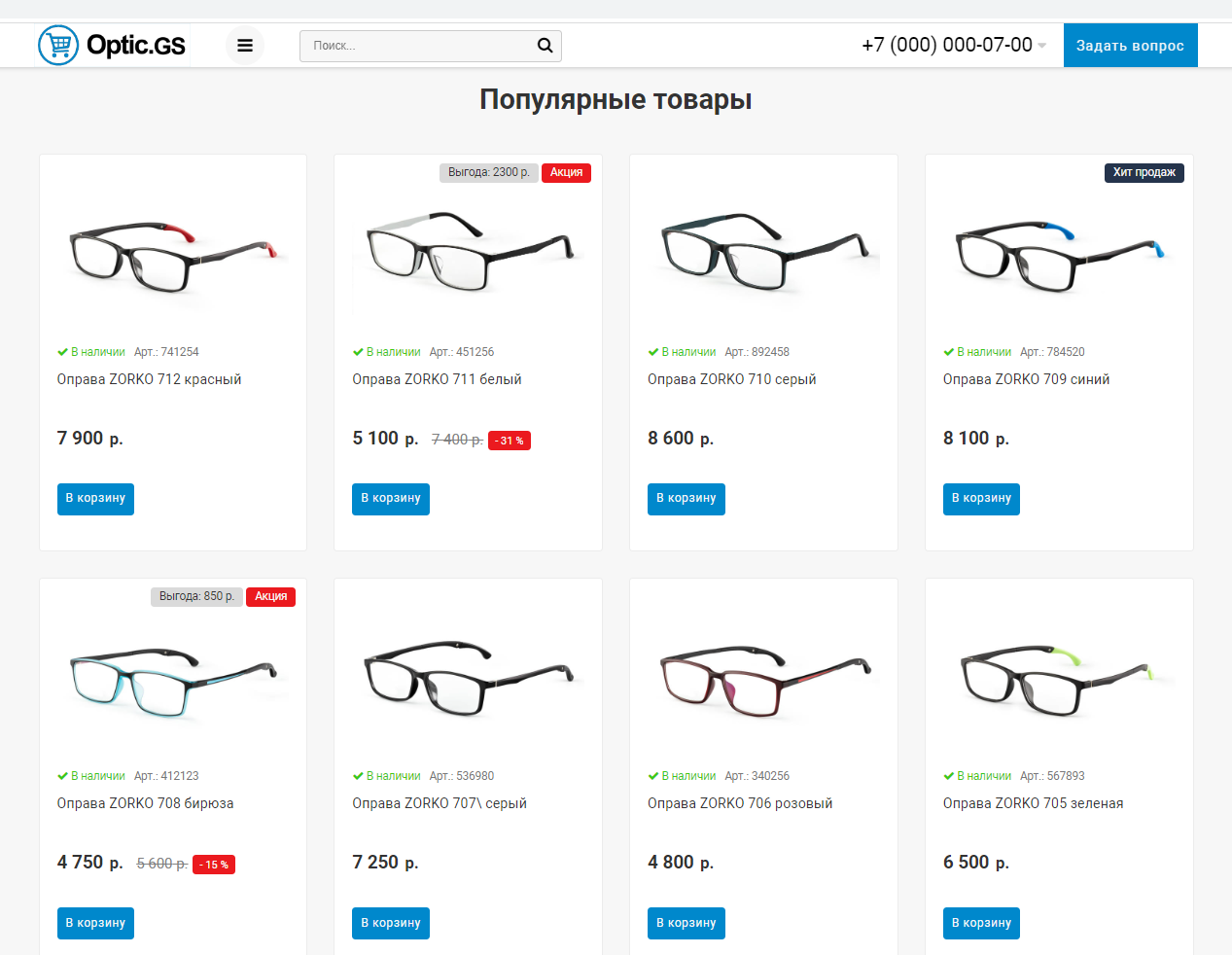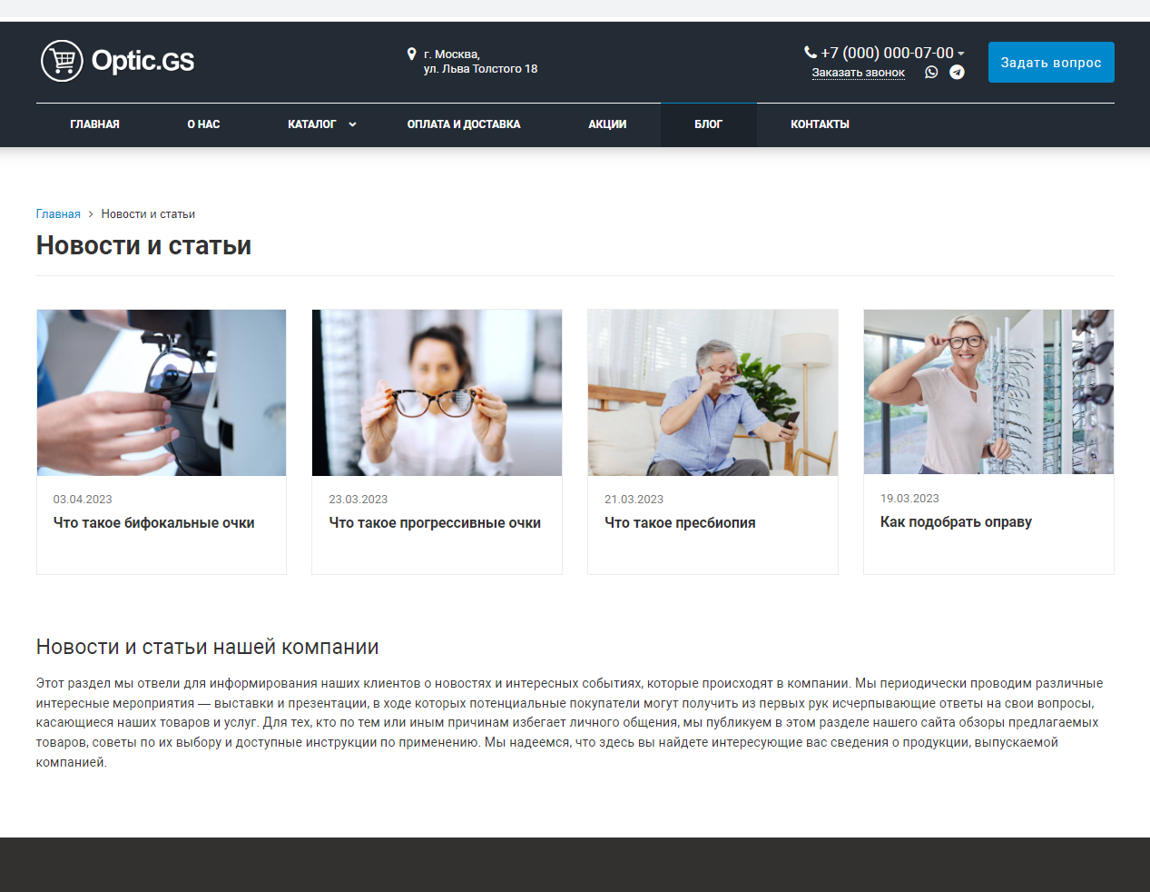 3. Выберите мастер "Optic.GS - сайт салона оптики" и нажмите в выпадающем меню Установить;