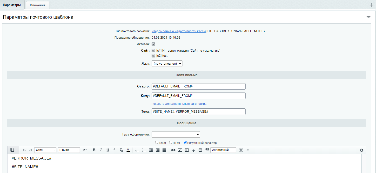 После установки будет доступен новый почтовый шаблон. Отправка уведомления происходит с помощью агента, желательно чтобы агенты работали на cron.