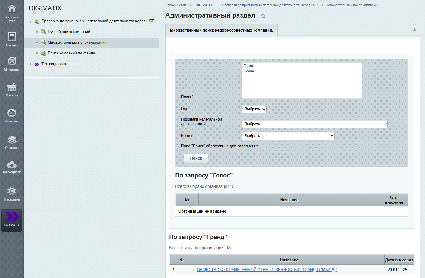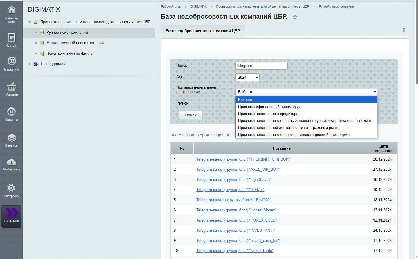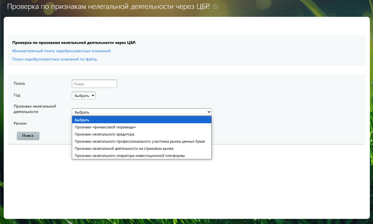 Проверка компаний по признакам нелегальной деятельности через Центральный Банк России