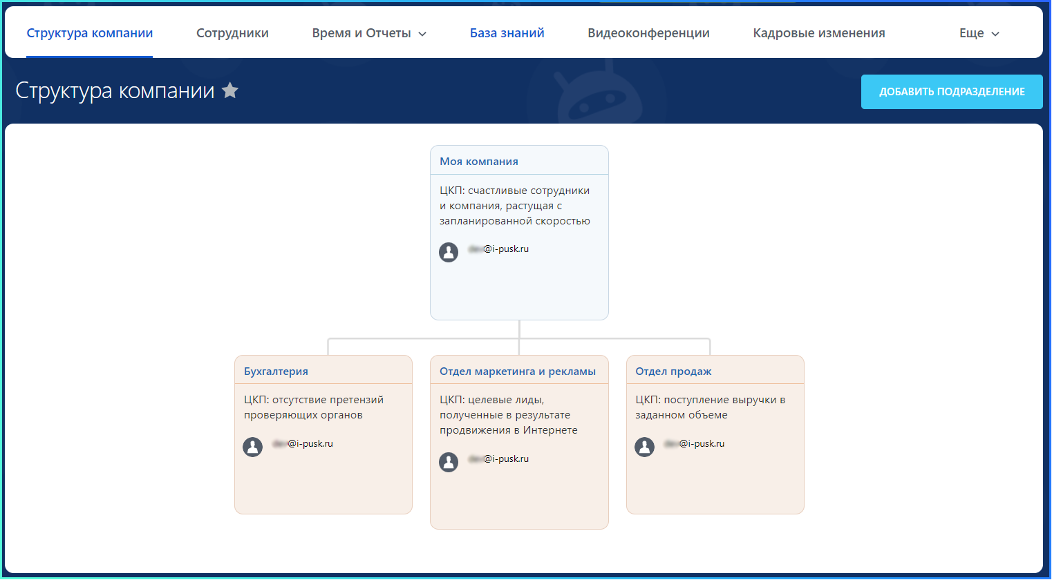 Настройки модуля «ПУСК: Оргструктура» осуществляются через штатную панель администрирования Битрикс24.