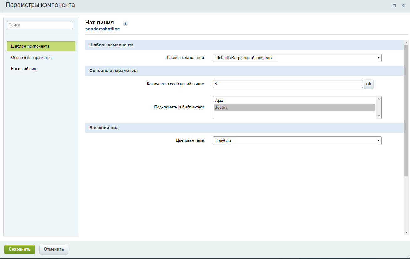 После установки решения, в визуальном редакторе появится новый компонент Чат-линия (если этого не случилось обновите кэш визуального редактора). Данный компонент можно разместить на любой странице сайта. Его нужно корректно настроить, обязательно задать "Количество сообщений в чате" и указать необходимые js-библиотеки, если они еще не подключены на сайте. Компонент использует jquery и ajax.