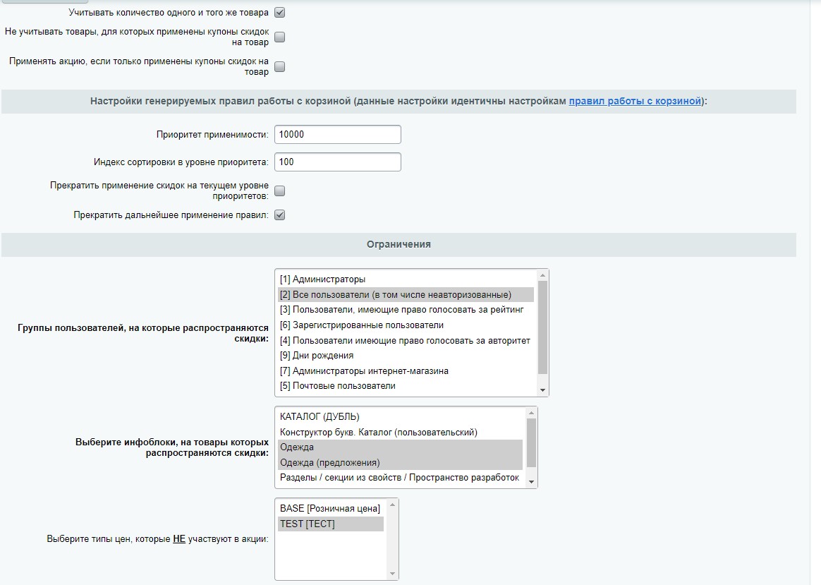 - Перед установкой модуля необходимо установить модуль Произвольное PHP условие правил работы с корзиной