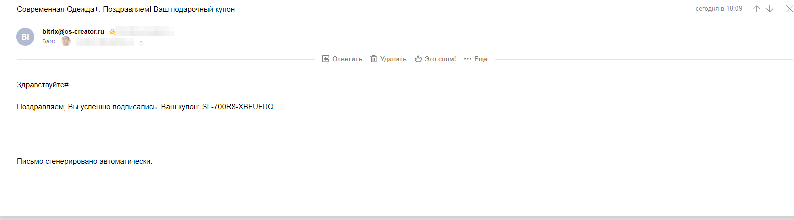 Scoder: Скидка за подписку. Всплывающее окно подписки. Купон за подписку